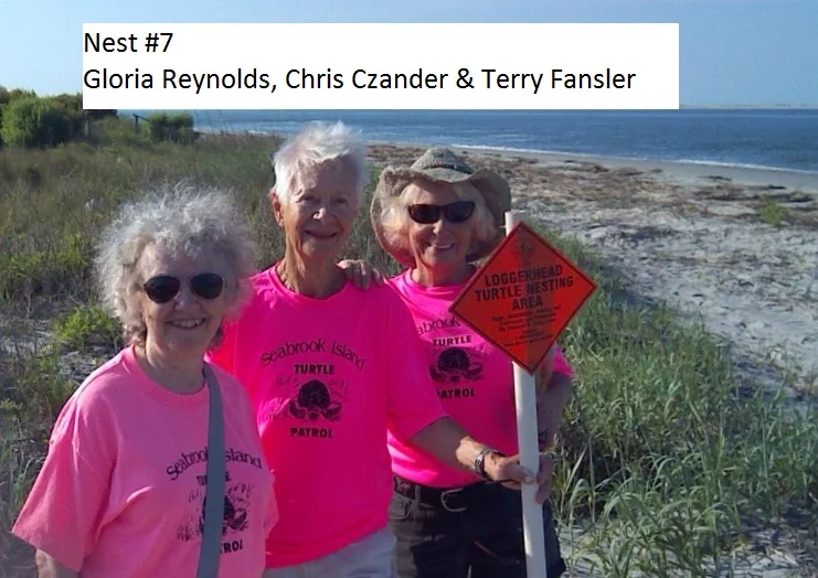 Meanwhile, Terry Fansler, Gloria Reynolds and Chris Czander called with a crawl in front of the Beach Club Villas on Zone 2. Tim Morawski and Judy Morr probed and Judy found nest #7 with 105 eggs. Tim then moved the nest back further on the dune to avoid high tides.