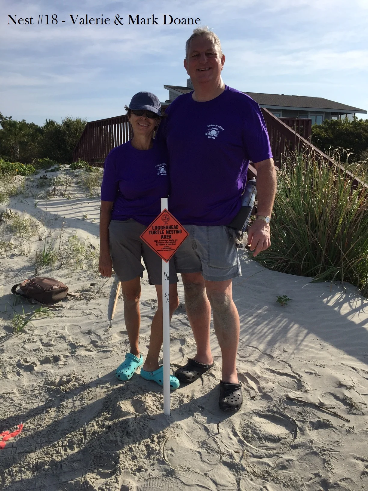 Nest #18 was found by Valerie and Mark Doane on Zone 3 near boardwalk #2. The nesting Loggerhead came in and around three times before laying a nest of 113 eggs. The nest was moved to Zone 2.