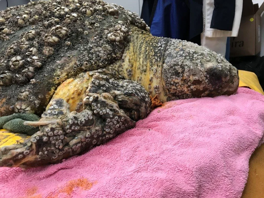 They will have to amputate Bruce's right front flipper due to a shark chewing on it. He has an extreme amount of Barnacles, and lab tests show deficiencies that need to be corrected. However, the Turtle Hospital says things look optimistic at this time for his survival. Hopefully, we can all visit him at the Aquarium Hospital this Spring and maybe longer!