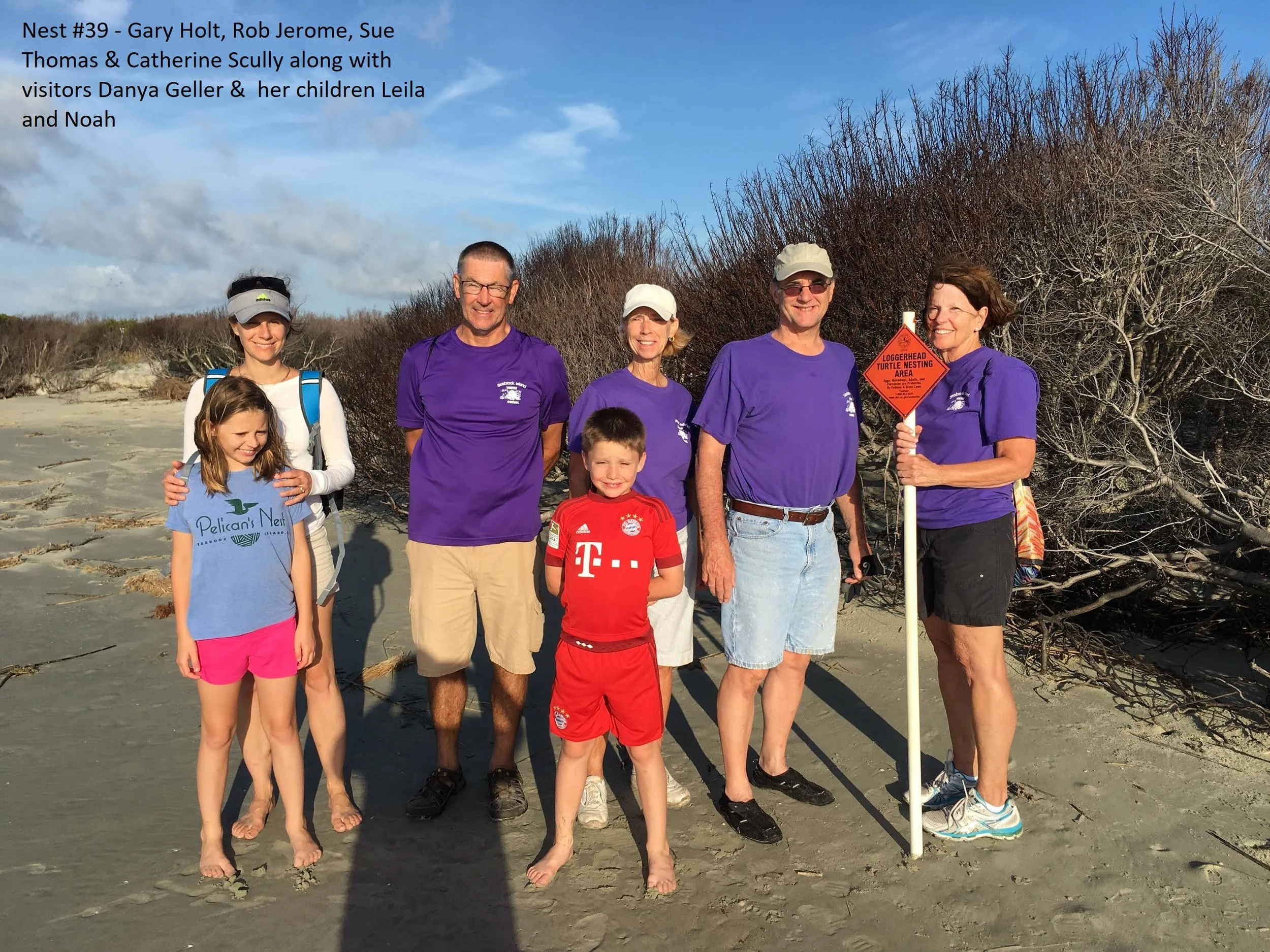 Walkers Cathrine Scully, Sue Thomas, Gary Holtz, Rob Jerome, and Danya Geller with her 2 children, Noah and Leila called with a crawljust south of Boardwalk 2. Bill and Linda Nelson with Jim Lawrence responded and found Nest #39. The 60 eggs after the sample were moved south in Zone 3.