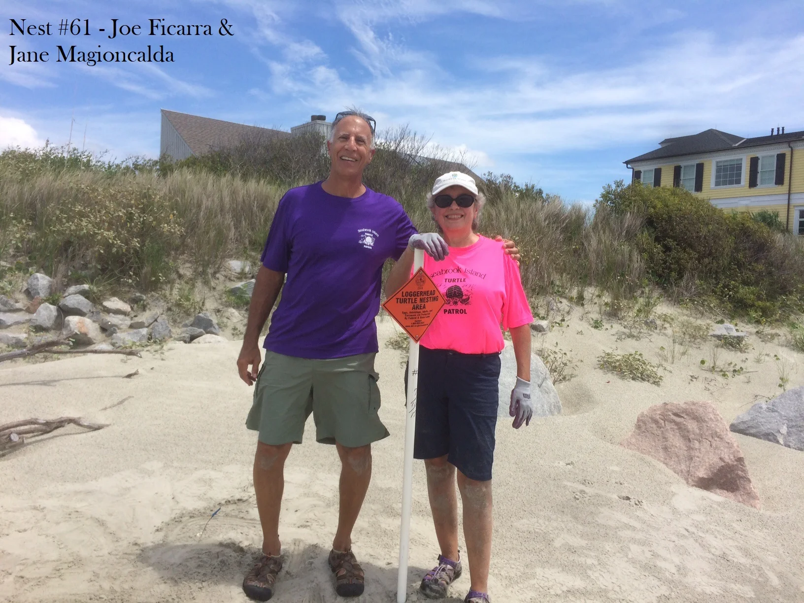 Vicky & Bob Becker, Jane Magioncalda & Joe Ficarra reported that nest #8 had boiled. They also found some shell fragments and a dead hatchling in front of the yellow house north of the club. They nosed around and found a wild nest! It was nest #60 which Bill Nelson marked and screened.
