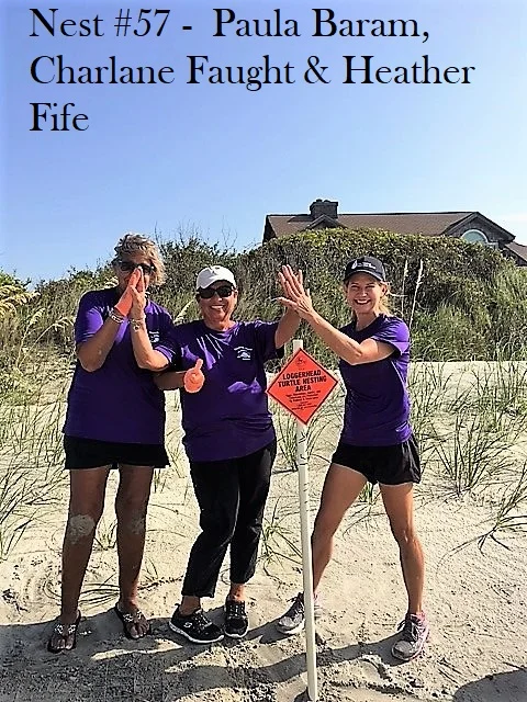 Paula Baram, Charlane Faught and Heather Fife reported a crawl in front of the third house north of the club. It turned out to be their first nest!! Sandy MacCoss found the nest. The 126 eggs of nest 57 were moved to the nesting area a few houses north.