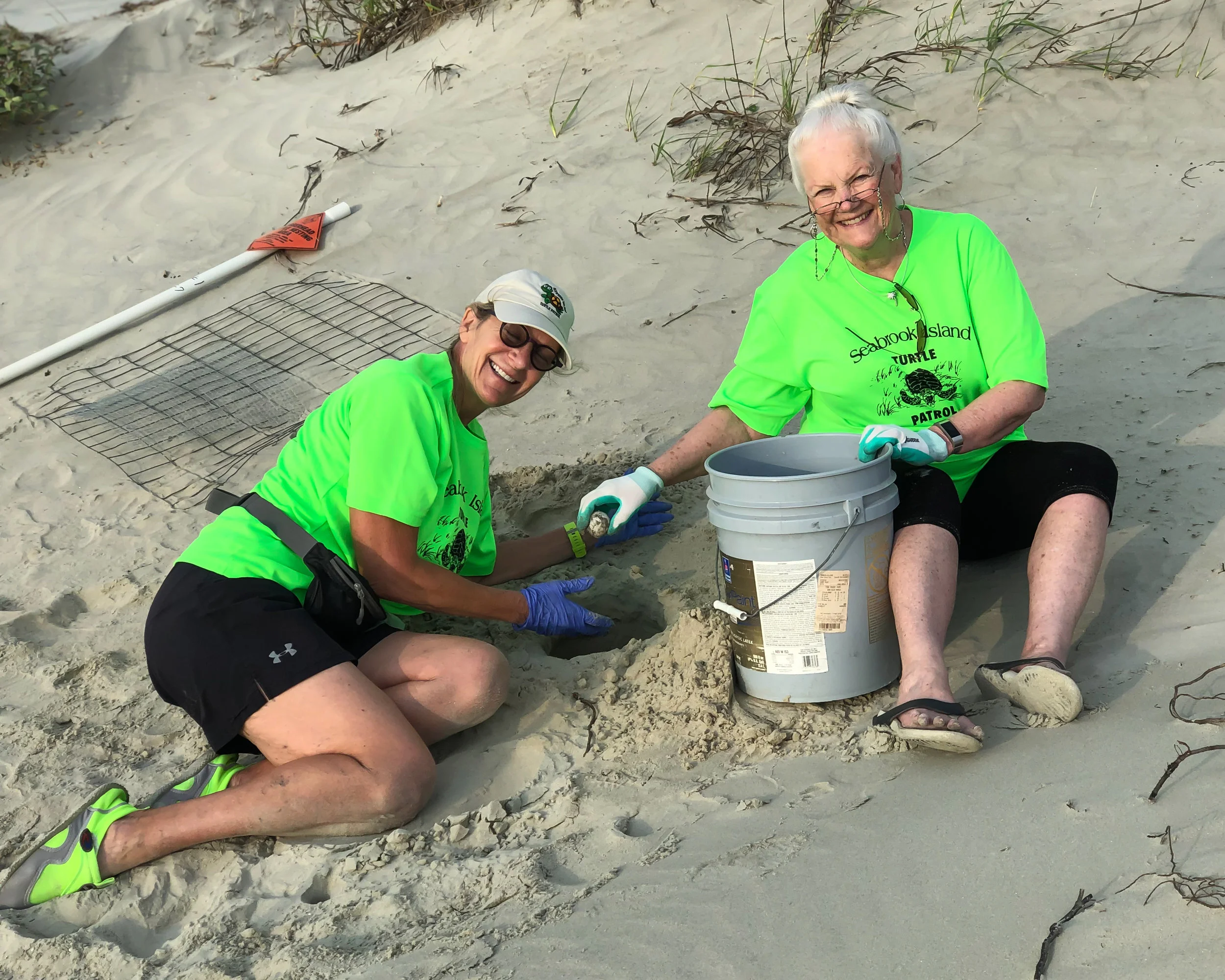 We have Nest # 1! Tory Kindley with Bill and Linda Nelson found the crawl 100 yards North of Boardwalk 3. Judy Morr responded and the nest was found on first probe! The 143 eggs were moved to higher ground south of Boardwalk 4.