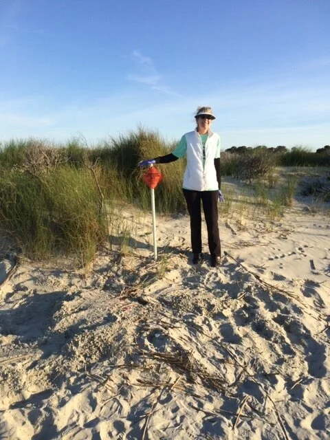 6:29 AM is apparently the magic moment! Both 2020 nests were reported at exactly 6:29 AM. Today, Tory Kindley reported a crawl about 150 yards north of Boardwalk 3. Judy Morr probed and we now have Nest 2, which was left in-situ. The rest of the beach was clear, as Walkers enjoyed the chilly but beautiful morning.