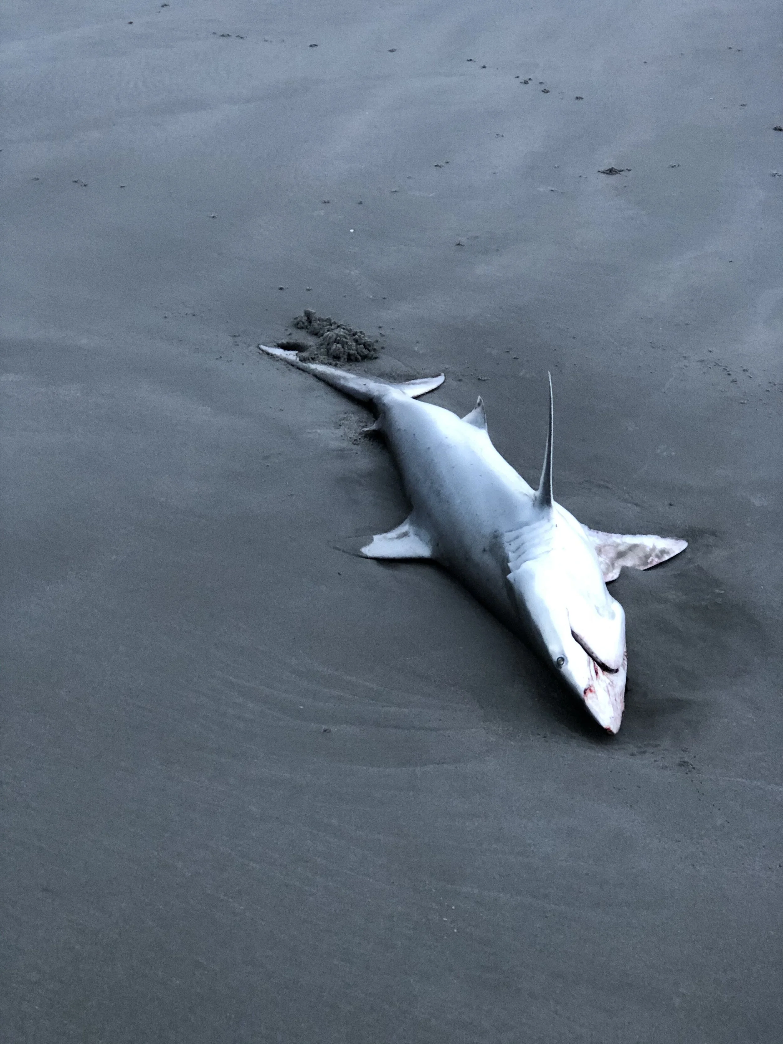 Tory Kindley first called about a dead shark on the beach just north of Boardwalk 3. The Beach Patrol was contacted and either they or the tide will remove the animal. A few minutes later Tory called in a crawl about 50 yards south of Boardwalk 5. Mike Vinson was dispatched to probe and found Nest 22. The nest was left in situ.