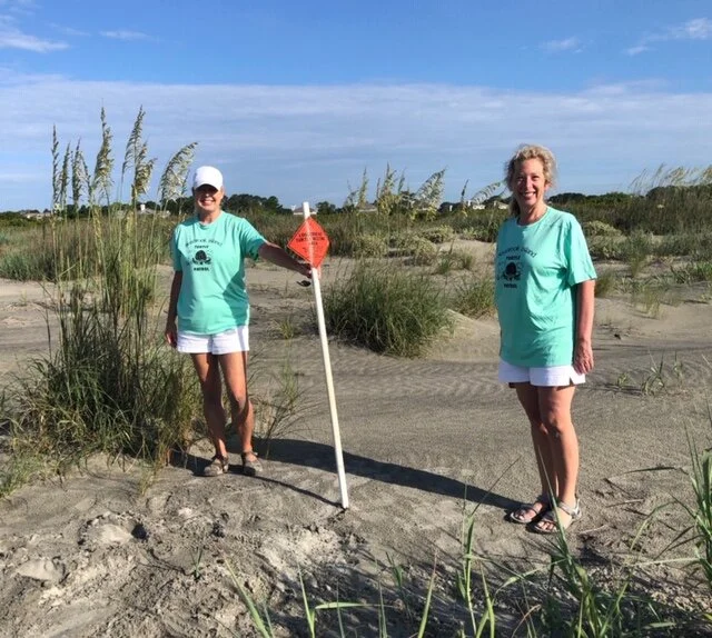 Sarah Dewey and Joanne Lewis had to walk all the way to the very end of North Beach to find a crawl near the dolphin watch box. While waiting for Mike Vinson to probe they had the pleasure of watching dolphins strand feed. It was worth the wait as Mike found Nest 46 and the 118 eggs were relocated to a safer spot about 40 yards north of the dog sign.