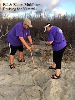 Vicky & Bob Becker, Jane Magioncalda & Joe Ficarra reported that nest #8 had boiled. They also found some shell fragments and a dead hatchling in front of the yellow house north of the club. They nosed around and found a wild nest! It was nest #60 which Bill Nelson marked and screened.